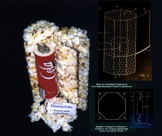 Mr. Rainer Dubrikow already registered a WORLD PATENT in 1998: pressed popcorn as packaging material: in sweet, salty or neutral flavour with or without a tear-off sleeve.