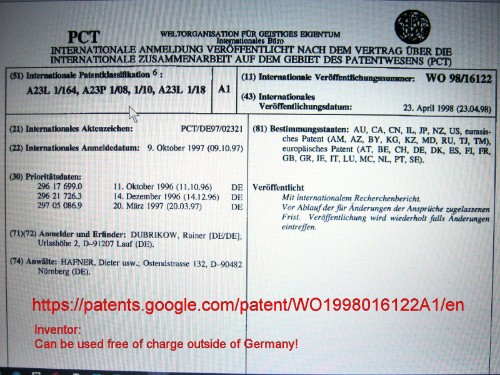 This revolutionary innovation is released worldwide free on the website www.gruftiearbeit.com under FREE LICENSES (= page 10) (except for Germany) under the condition of stating the author’s credentials (copyright).