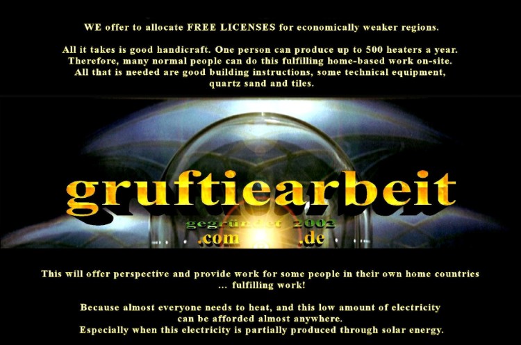 Unsere erreichte Zielsetzung: mit extrem wenig Strom – extrem viel gesunde Wärme erzeugen! Stromverbrauch unserer Wohlfühl- und Raumheizungen maximal 250 Watt pro Stunde. Soviel wie ein PC oder vier 60 Watt Glühbirnen. Neueste Auszeichnung: Goldmedaille 01.11.2008 auf der weltgrößten internationalen Fachmesse: „Ideen – Erfindungen – Neuheiten“ = IENA (bewertet durch 22 Juroren bei 800 Aussteller aus 39 Länder).